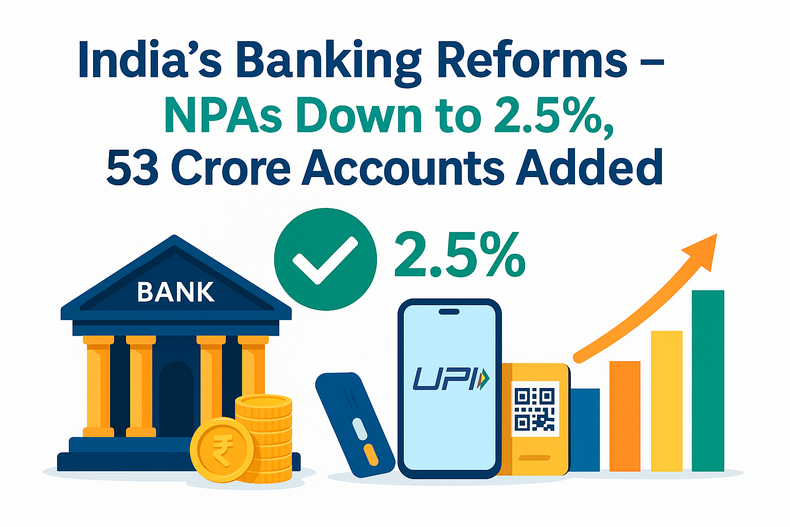 India’s Banking Sector Reforms: NPAs Drop to 2.5%, 53 Crore Accounts Added