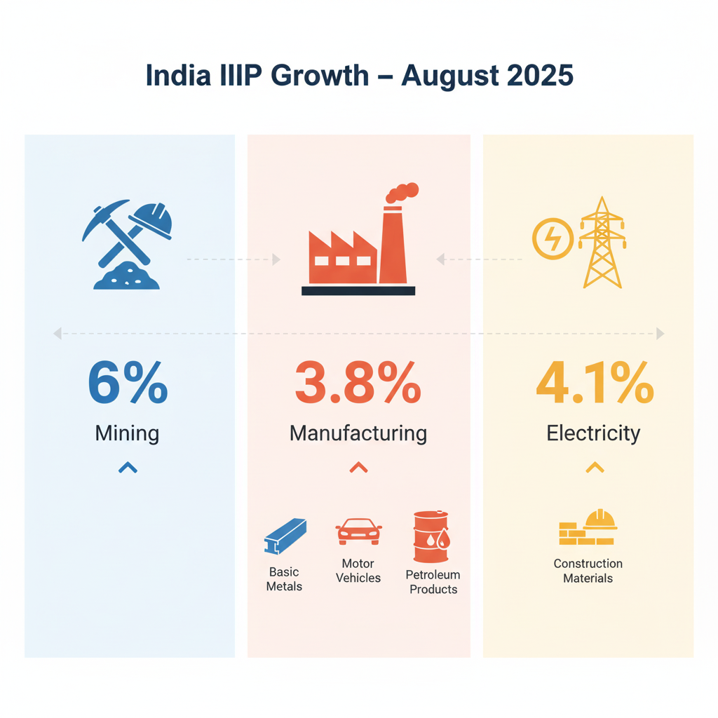 India’s Industrial Sector Expands 4.0% in August 2025, Mining and Manufacturing Drive Growth