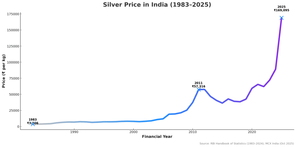 From ₹3,500 to ₹1.7 Lakh: 40 Years of India’s Silver Surge (1983–2025)